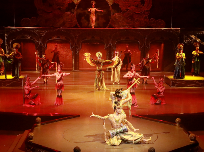 以《又见敦煌》《乐动敦煌》《敦煌盛典》《千手千眼》为核心的“四大演艺”,“十四五”期间累计演出7901场,接待观众超375万人次。全球首部洞窟式沉浸体验剧《乐动敦煌》通过复原50余件敦煌古乐器,借助全息投影与3D威亚技术,让“反弹琵琶”“胡旋舞”从壁画中“飞”入现实。凭借创新的体验模式获评“2023年度(行业)最佳文旅项目”“2024夜间旅游优选项目”。