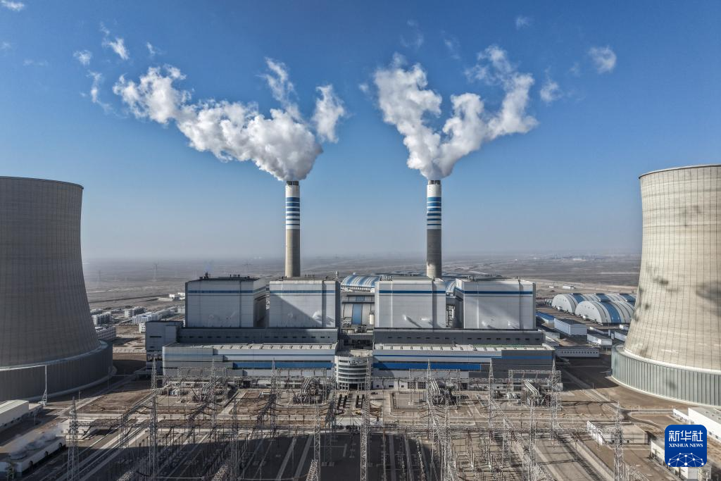 这是11月19日在甘肃省酒泉市瓜州县拍摄的甘肃电投常乐电厂外景(无人机照片)。新华社记者 郎兵兵 摄