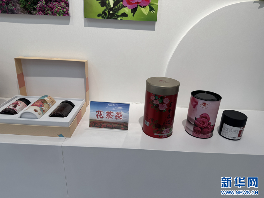 这是在苦水玫瑰文创基地里拍摄的玫瑰花茶类产品。新华网发(刘欣瑜 摄)