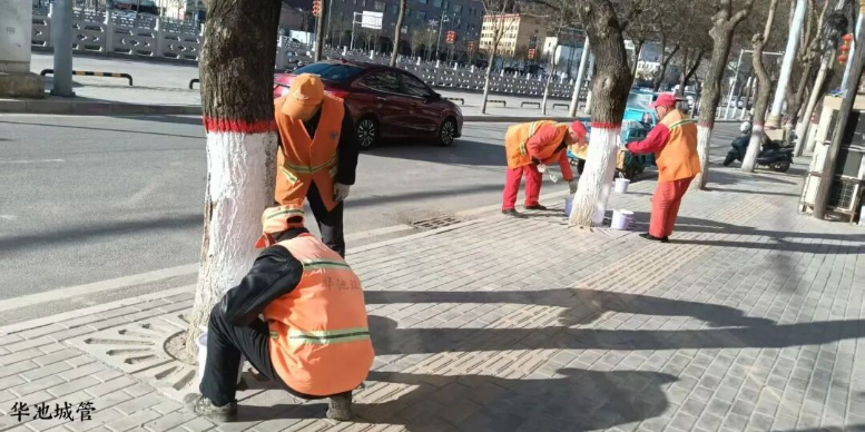 为扎实做好秋冬时节绿化养护管理,提高苗木的抗寒性和抗虫性。连日来,华池县城市管理综合行政执法队利用天气晴好有利时机,秉持“早准备、早部署、早行动”的工作原则,紧扣冬季养护关键时间节点,全面启动树木涂白工作,为树木安全越冬筑牢“防护屏障”。