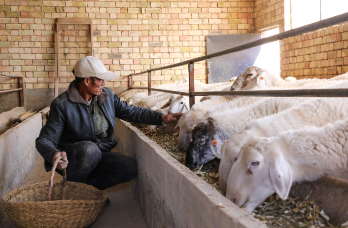 在政策扶持下,他盖起150平方米羊棚和50平方米草棚,靠着政府投入的1只种公羊,再从村上合作社赊了10只母羊,正式踏上养羊路。