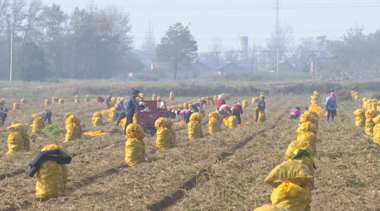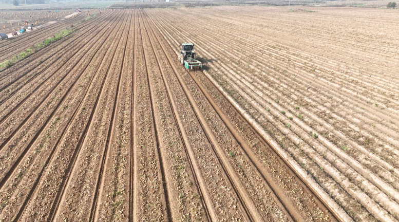 在太平镇老庄村的庆阳沃帆生态农业发展有限公司千亩马铃薯复种提质增效示范点,多台大型农机来回穿梭紧张作业,工人们娴熟地捡拾着泥土中翻出马铃薯,田垄间,一袋袋装满马铃薯的编织袋整齐排列,地头的空地上,挖掘机与运输车辆轰鸣作响,工人们默契配合,将袋装马铃薯稳稳吊装上车。近两年,公司探索试验“油菜+马铃薯”“小麦+马铃薯”旱地轮作模式,在夏收闲置耕地复种马铃薯,让“闲置田”变“增收田”。