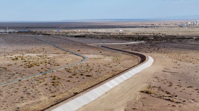 肃北县党河县城段水源调蓄水池工程项目经理李伟光说:“本工程总投资1.15亿元,于2022年4月正式开工建设,总长度约800米。工程建成后,将有效缓解全县生产、生活和生态用水紧张局面,有力改善县城生态环境,对祁连山区域生态修复起到了积极示范的作用。”