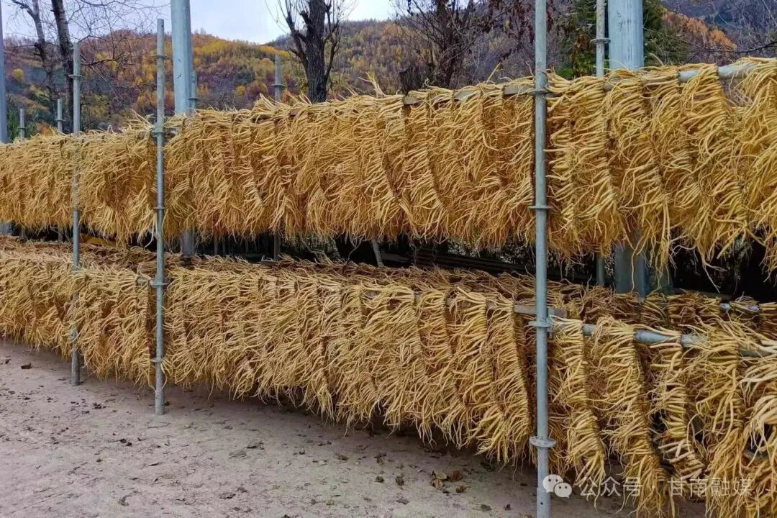 舟曲县宏祥苗木种植农民专业合作社采取“统一供种、统一技术、统一销售”的模式,为社员提供全方位服务,今年更是引进机械化耕种和采挖设备,大幅提升了生产效率。“相比较往年人工采挖,机械化操作更加方便,效率也提高了不少。”合作社负责人何刘生介绍,去年合作社带动60户农户种植药材,户均收入达6000元,今年种植规模进一步扩大,预计效益会更加可观。在合作社的加工车间里,社员们正忙着对刚采收的药材进行分拣、晾晒,质检员则仔细检查每一批药材的品质,确保达到收购标准,从田间到车间的标准化流程,让舟曲中藏药材的品质得到了有力保障。