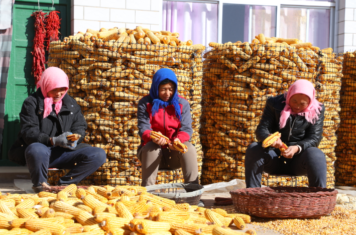 在闫塬村村民郭克粉家的院子里,十多笼玉米堆得满满当当,剥去外皮的玉米棒颗粒饱满、色泽鲜亮。11月27日,趁着晴好天气,郭克粉正和邻居们围坐在一起剥玉米,指尖翻飞间,金黄的玉米粒簌簌落下,欢声笑语在庭院中回荡。“今年种了20多亩地膜玉米,前半年旱得让人揪心,没想到最后长得这么好!”她手里的活计不停,脸上满是笑意,“一共打了40担玉米,趁这几天天好赶紧剥完卖掉,预计能收入2万多元,心里别提多踏实了!”