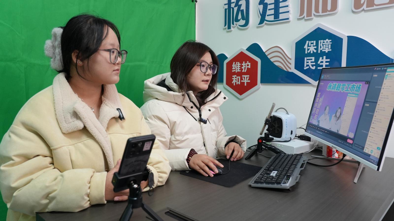 在永靖县零工市场二楼直播间,工作人员通过数字化手段重构就业服务模式。每天下午6点至晚上8点,“永靖就业”抖音号、快手号、视频号同步直播,通过线上模式发布用工需求,为广大求职者答疑解惑,直播间最高浏览量达到8万人次,平均每天线上咨询人数达到200余人。