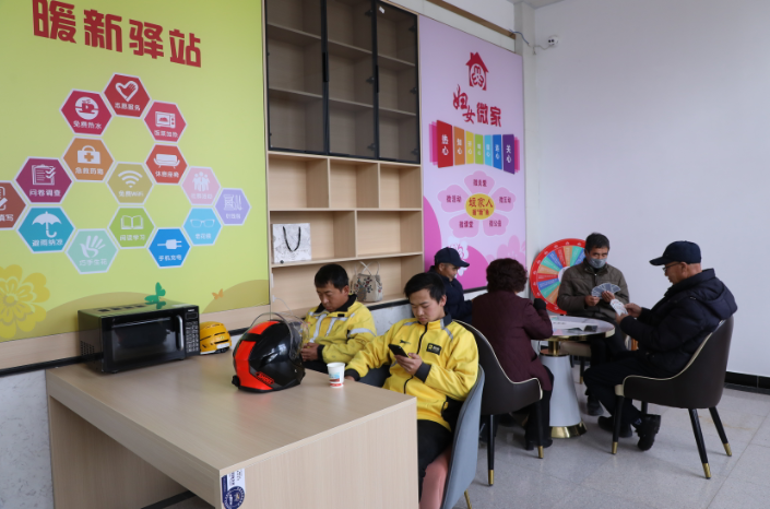 “夏天能避暑,冬天能取暖,有个歇脚的地方,心里踏实。”这个小小的驿站,配有医药箱、微波炉、充电设备,成了奔波在城市街巷的“小哥”们短暂的加油站。