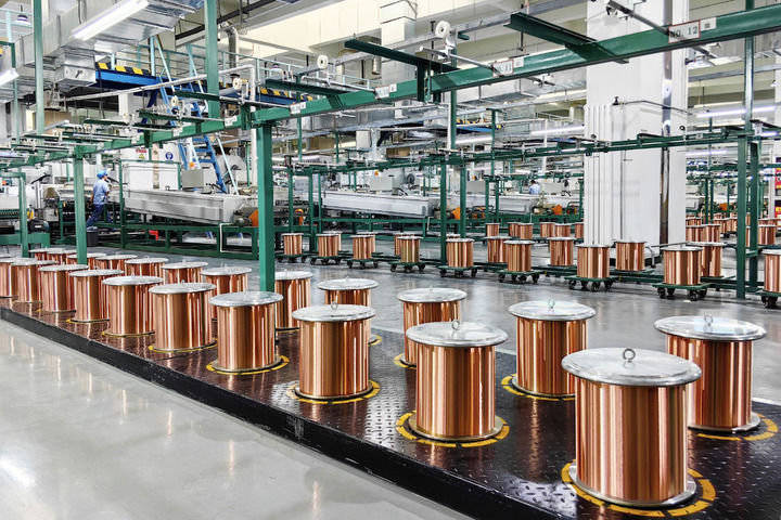 这是9月5日在白银有色长通电线电缆有限责任公司拍摄的超微细电磁线生产线。(宋秉棣 摄)