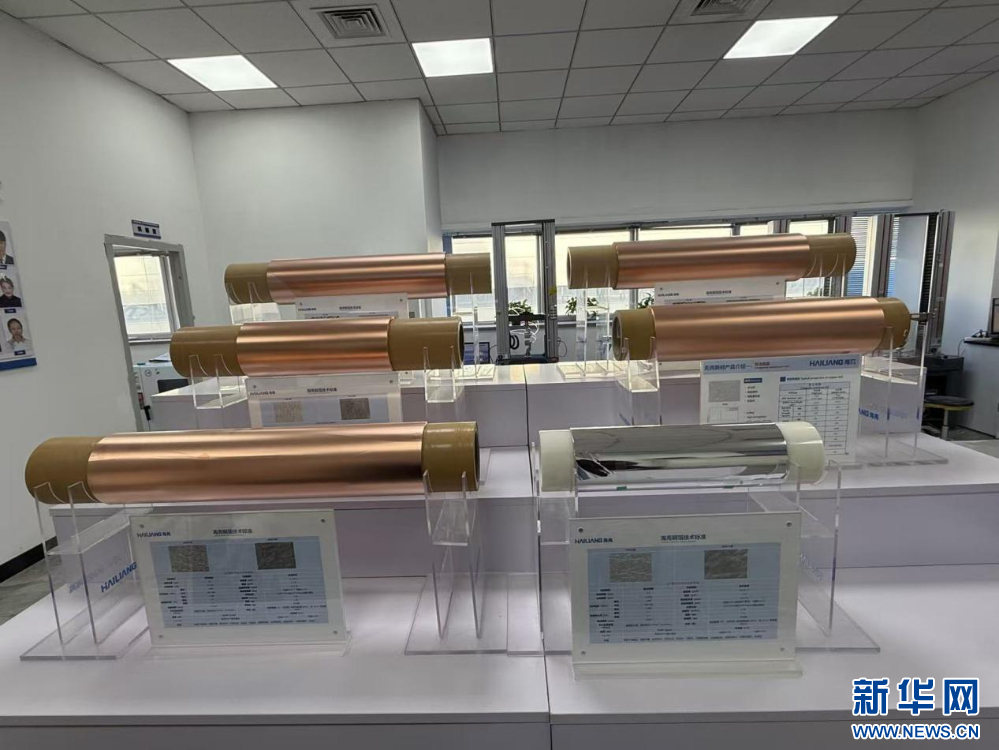 图为甘肃海亮新能源材料有限公司生产的铜箔样品。