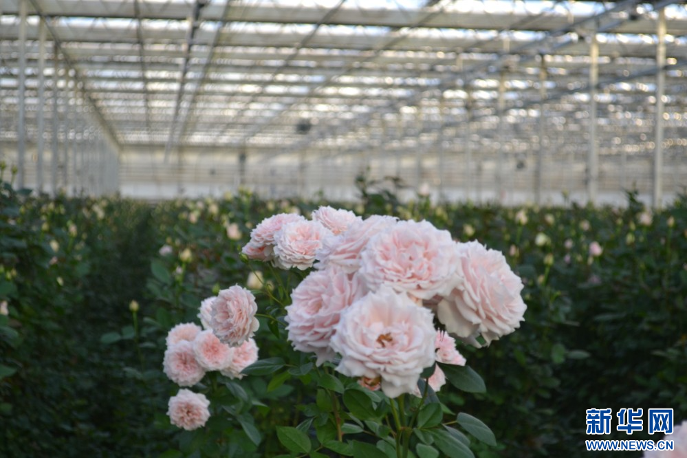 图为兰州新区现代农业示范园智能温室里盛开的花卉。