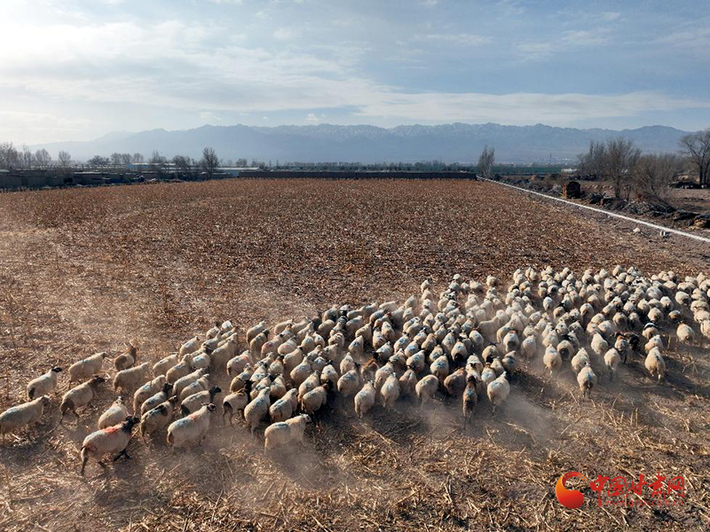 作为高台县借牧核心区域之一,南华镇凭借丰富的秸秆、苜蓿等饲草资源,成为省内外牧民冬季借牧的首选地。在这里,像祁昌斌这样的借牧户不在少数,他们的到来不仅解决了自身冬季养殖难题,更给本地农户带来了意外之喜。智号村村民王大爷坦言:“把秋收后的玉米地租给借牧户,一个冬季就可以有几万的额外经济收入,羊群留下的粪便还是天然有机肥,明年春耕能省不少化肥钱,土地也更肥沃了。”这种“秸秆—牲畜—肥料”的绿色循环模式,让农区秸秆变废为宝,实现了资源的高效利用。