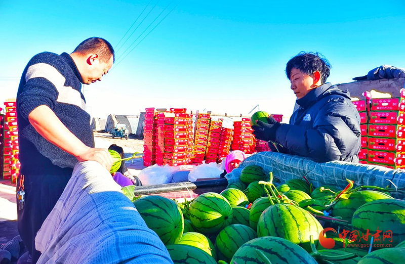 冬季寒意渐浓,高台县暖泉村的大棚内却是一派热闹的丰收景象,这里的温室大棚西瓜正迎来了丰收季,放眼望去,一个个结实饱满、圆润光亮的西瓜在田间整齐排列,村民们穿梭在瓜田间,手法娴熟地进行采摘、整理,签订了订单的客商正等待收购,村民将西瓜精心整理后,随即装车运走,现场一派繁忙有序的产销景象。