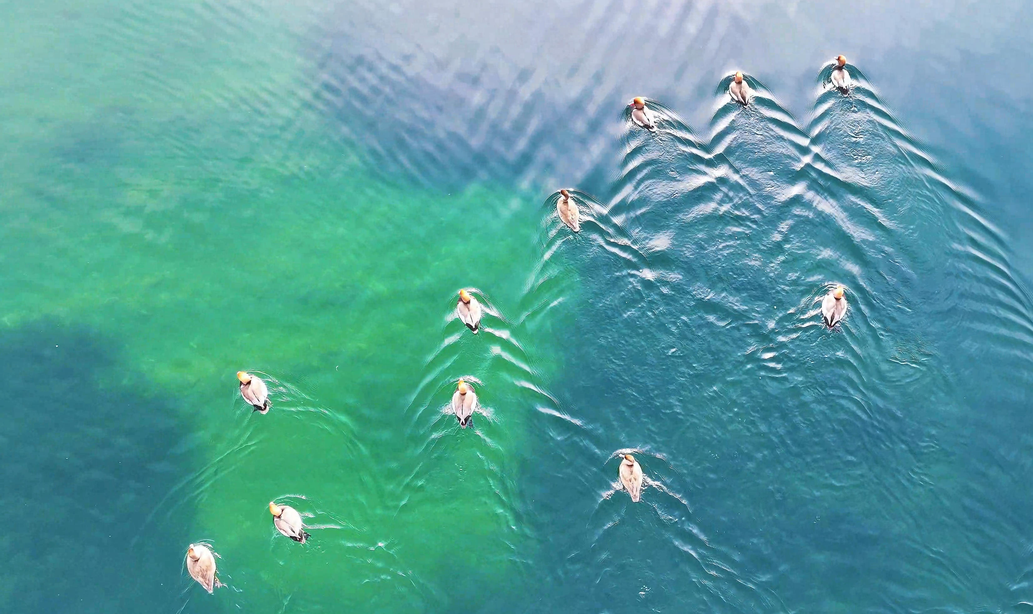 寒冬时节,黄河甘肃积石山段碧空如洗,河面青绿,成群结对的赤麻鸭、绿头鸭、麻嘴鸭在水中栖息、觅食,为冬日黄河岸畔注入勃勃生机,勾勒出“冬日黄河清,生灵乐栖居”的和谐画卷。(视频制作:苏燕平 拍摄:黄龙 王宇军 杨玲玲)