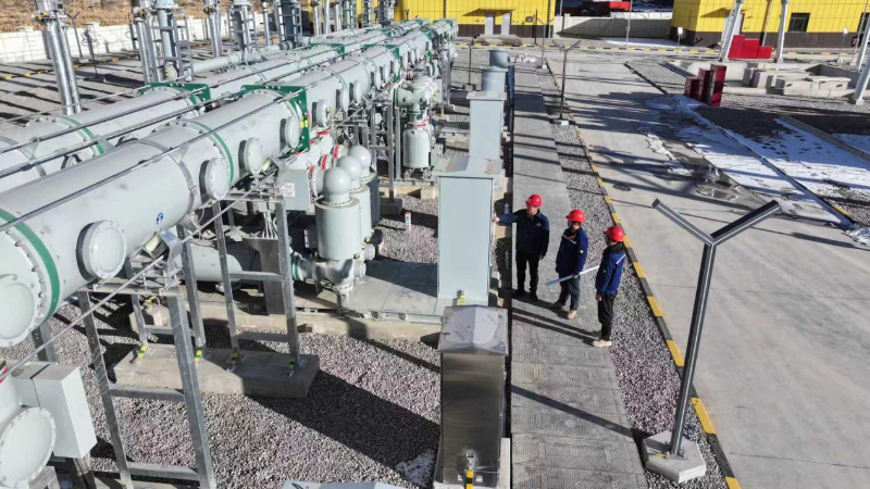国网兰州供电公司员工在330千伏策镁变电站核对竣工图与实际设备位置对应情况。李小东摄