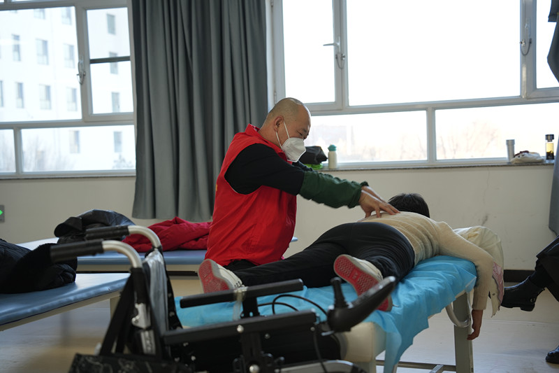 除了日间照料集中服务,针对无法前往日间照料中心的残疾人,中心还提供了居家照料服务,每月为在家的残疾人提供1次固定上门服务,同时开通“随需随到”的响应通道,服务内容涵盖康复按摩、艾灸、拔罐等康复护理项目,用专业的服务帮残疾人缓解身体的不适,更帮他们重新搭建起与外界连接的桥梁。