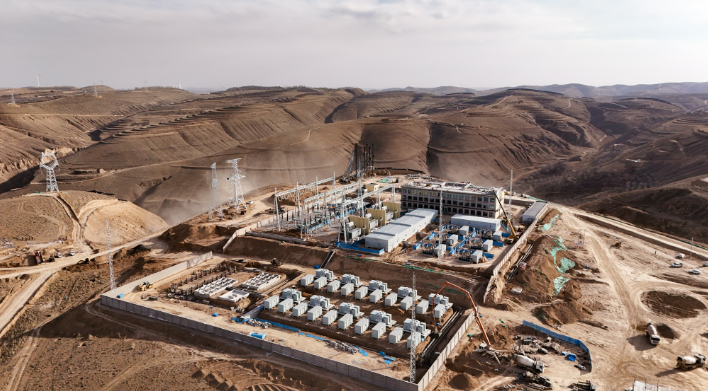 在环县小南沟乡天子渠村的甘肃庆阳东数西算产业园区绿电聚合试点项目建设现场,吊装拉运车载着风机叶片穿梭在大山里,混凝土泵车发出沉闷地轰鸣声,工人们忙碌有序地进行升压站SVG无功补偿装置35kV电缆敷设……几百名建设者和几十台机械在黄土高原的寒风中协同施工,全力以赴赶进度、保质量,处处涌动着攻坚奋进的热潮。