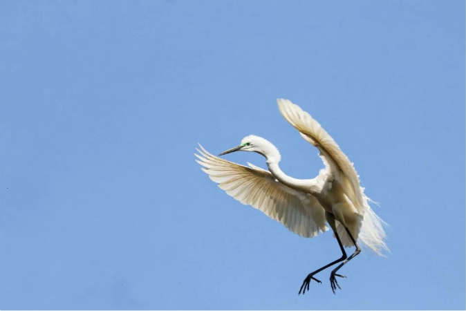 白鹭振翅飞翔。