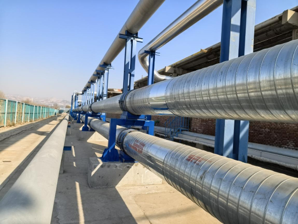 兰州市西城余热供暖1号能源站项目厂外供暖水管网管架。