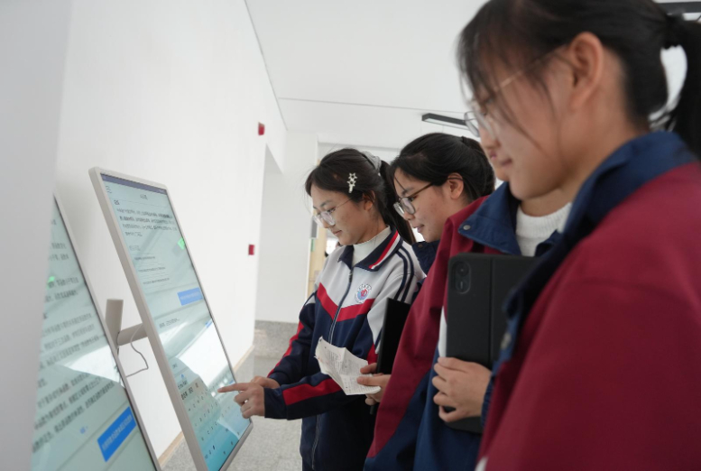 步入金塔县中学校园,崭新的教学楼错落有致,功能完备的活动室宽敞明亮,各类现代化教学设施配置齐全。高二(18)班的课堂上,老师运用动态视频教材开展教学;课后,学生们围在“AI学伴”设备前,根据自身的学习节奏自主推进学习进度。智能化学习设备的投入使用,让学生们的学习体验发生了显著变化。