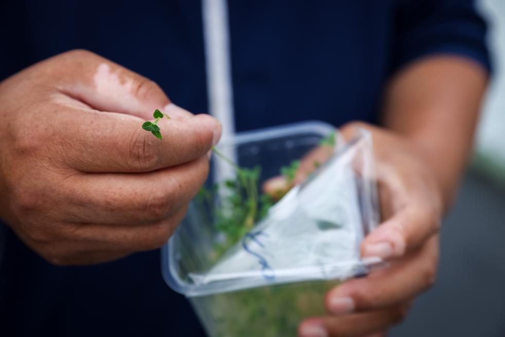 工作人员在甘肃定西马铃薯研究所查看马铃薯脱毒苗。新华社记者吕帅 摄