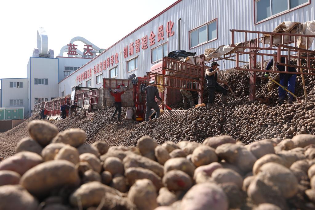 在甘肃省定西市安定区一家马铃薯加工企业,马铃薯即将进入加工环节。新华社记者多蕾 摄