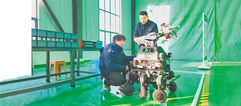 甘肃大陆智源科技有限公司在瓜州县北大桥工业园区生产的首批执法辅助机器人顺利完工。新甘肃·甘肃日报记者 马万旭