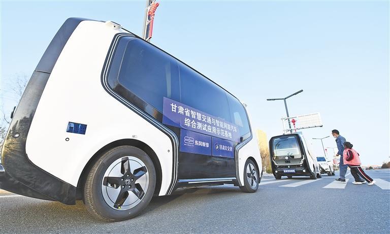 兰州新区自动驾驶动态体验车在“城市开放道路测试区”上路行驶。新甘肃·甘肃日报记者 丁凯