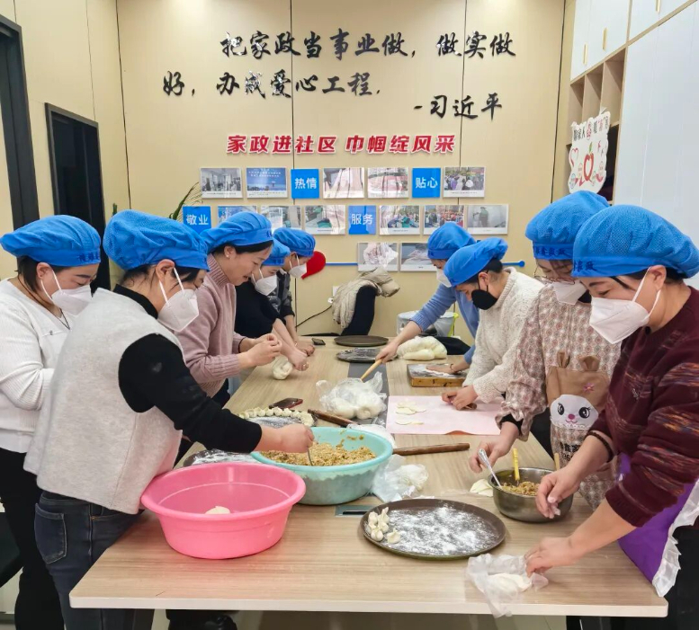 驿站里,巾帼志愿者、家政服务员与社区老人、居民围坐一起,大家揉面擀皮、调馅包饺,欢声笑语间,香气四溢的饺子承载着团圆的温馨,暖意沁入心田。饺子包好后,巾帼志愿者和“爱心妈妈”带着热气腾腾的饺子和米面粮油等生活物资,上门慰问独居老人、困难家庭和困境儿童等特殊群体。她们不仅送上暖心物资,还主动帮忙打扫屋子、检查水电安全,耐心询问生活上的需求,用贴心陪伴驱散冬日的寒冷。不少驿站还趁这个机会,给想找工作的妇女们提供家政技能培训,宣讲相关政策,帮大家学本领、在家门口就业。