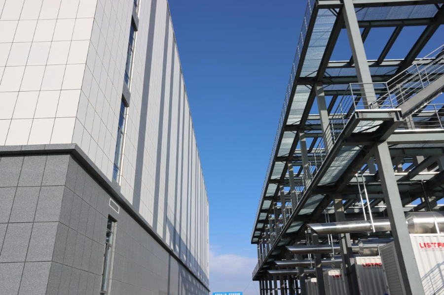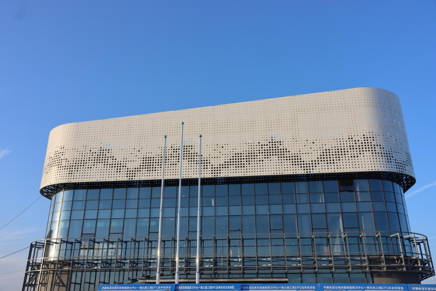 目前,一期工程(包括1#数据中心、生产调度中心等)自2024年10月开工,现已完成所有主体结构封顶及土建施工。机电配套工程正全速推进,1#数据中心部分机房已完成90%的工程量,正在进行冷冻管路安装、走线架敷设及冷却塔基础施工,全力保障首批机柜按期交付。