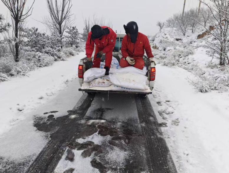 “沙沙……”铁锹、扫帚与积雪摩擦发出的声此起彼伏,各乡镇的清扫工作也同步推进。全县20个乡镇立即组织动员,广大党员干部冲锋在前,带领公益性岗位人员、新时代文明实践志愿者及热心群众,拿起铁锹、扫帚,出动铲车等机械设备,全力投入到清雪工作中。耿湾乡、小南沟乡、芦家湾乡等乡镇同步开展扫雪除冰、铺撒防滑砂等工作,重点对通村公路的急弯、陡坡、桥梁、交叉路口等关键区域进行集中清理,采用“融雪剂+机械铲运+人工清扫”组合模式,高效清除路面积雪。