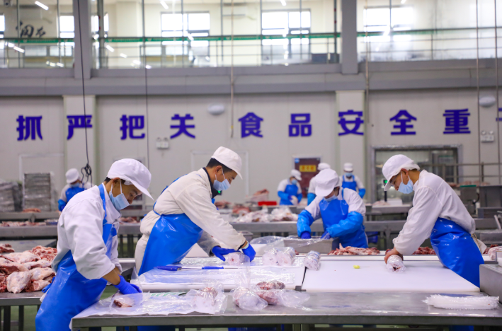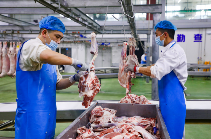 不光线下零售市场热闹,环县羊羔肉的加工环节同样一派忙碌,从鲜羊肉按部位分割到预制菜品加工,整条产业链趁着冬天产销两旺,全力保障节日市场供应。