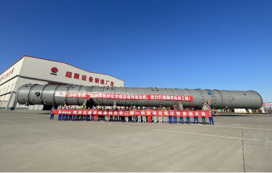 低压塔的高效交付,为设备后续安装、配置、调试等工作赢得了宝贵时间,也为项目建设按下“加速键”,兰石重装公司将以此为新起点,与陕煤榆林化学及各参建单位通力协作,安全优质高效推进后续任务,助力项目早日建成投产,为我国能源化工产业高质量发展贡献力量。