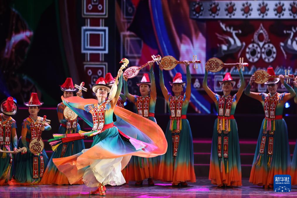 甘肃省张掖市裕固美舞蹈团的演员在甘肃省群众文艺展演展播活动首场演出中表演舞蹈(1月7日摄)。新华社记者 陈斌 摄