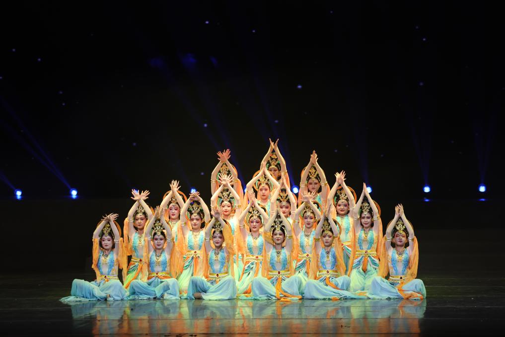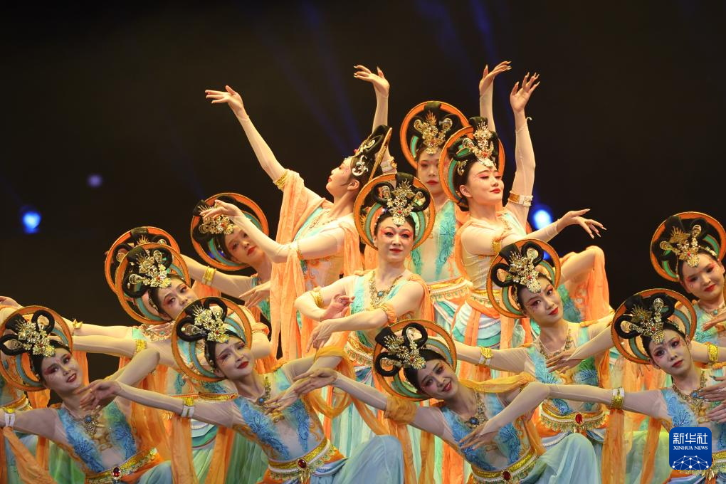 甘肃省酒泉市文化馆的演员在甘肃省群众文艺展演展播活动首场演出中表演敦煌舞(1月7日摄)。新华社记者 陈斌 摄