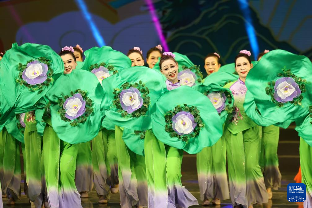 兰州大剧院和兰州戏曲剧院的演员在甘肃省群众文艺展演展播活动首场演出中表演舞蹈(1月7日摄)。新华社记者 陈斌 摄