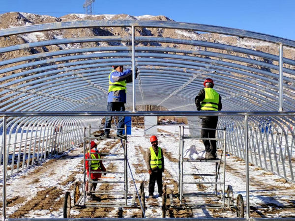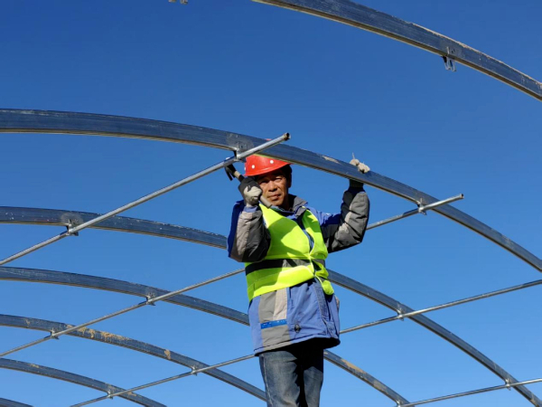 走进金塔镇日光温室产业园示范点建设现场,一派热火朝天的施工景象。大家各司其职、干劲十足,全力以赴抢抓工期、推进度。有的在搭建钢架结构,焊接火花四溅;有的在测量放线、紧固螺栓,还有的在规整建材、铺设管网,忙碌的身影穿梭在工地各处。钢筋碰撞的清脆声响与机器运转的轰鸣交织在一起,奏响了项目建设的“奋进曲”。