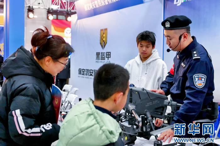 警察为群众介绍警用装备。新华网发(陈坤 摄)