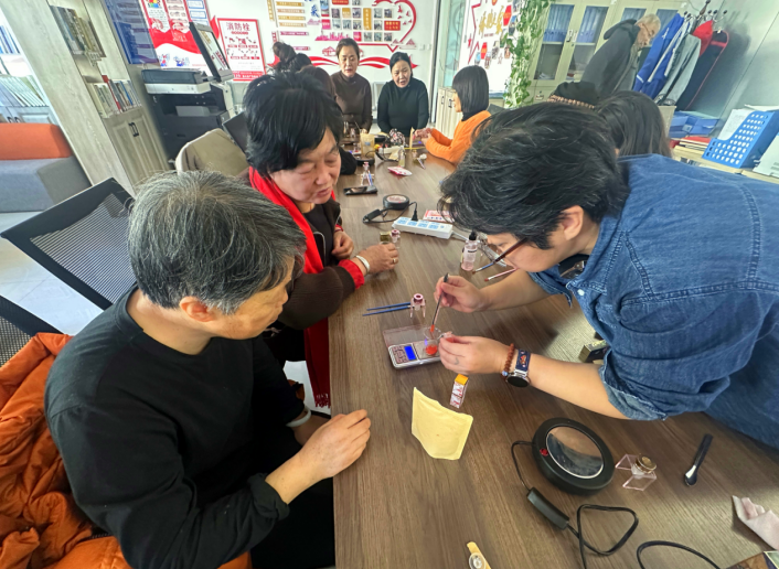 活动分为口红DIY与心理健康辅导两个环节。在专业老师指导下,居民亲手制作出专属口红,体验手工乐趣。随后的心理辅导以“关爱自己 从‘心’开始”为主题,通过案例分析与互动交流,帮助女性学习情绪管理与压力疏导,增进邻里情感。
