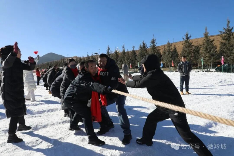 精彩的文艺展演落下帷幕,趣味运动会随即火热开跑!山地登高赛道上,选手们踏着皑皑积雪奋勇攀登,呼出的白气与飞扬的雪沫交织,身后留下一串串深浅不一的奋斗足迹;雪地拔河现场,12人混合战队紧紧攥住粗绳、重心后沉,“加油!加油!”的口号声、呐喊声此起彼伏,红色绸带在冰雪赛场上来回拉锯,每一寸移动都彰显着团队协作的强大力量;雪圈牵引项目里,两人一组默契搭档,雪圈飞速划过之处溅起漫天雪絮,清脆的笑声、兴奋的呼喊声洒满整个赛场;雪地自行车与踢毽子项目同样趣味盎然,选手们在冰天雪地里灵活穿梭、轻盈跳跃,身姿矫健、活力满满,充分展现出羚城儿女昂扬向上、奋勇争先的精神风貌。