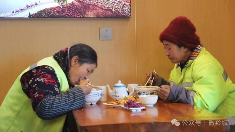 在牛肉面馆,刚结束早班清扫的环卫工人文小兰吃着热腾腾的牛肉面,脸上露出笑容。“以前都是自己早起做饭,现在能就近吃上热乎饭,心里特别暖和。”她表示,会将这份关怀化为动力,更加认真地做好环卫工作。