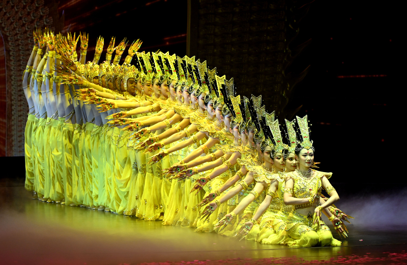 大型情景音画剧《千手千眼》以中国残疾人艺术团音乐舞蹈诗《我的梦》为蓝本,依托莫高窟第3窟等敦煌壁画元素创编而成,通过音乐、舞蹈、多媒体等形式讲述了“妙善救父”的民间故事,向中外游客传递敦煌文化所蕴含的向上、向善、向美的人文精神。(张晓亮)