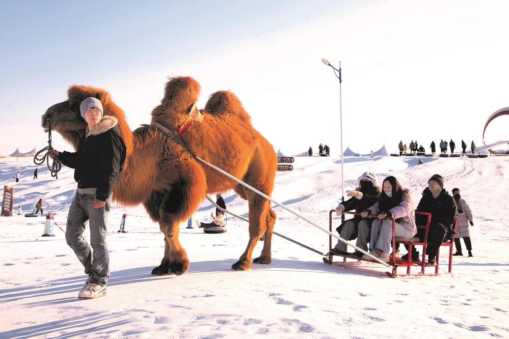 连日来,众多游客在张掖国家沙漠体育公园冰雪嘉年华体验冰雪乐趣,冰雪滑道、碰碰球、雪地摩托车、骆驼雪车等多样的冰雪活动为市民游客献上冬日文旅盛宴。(李自海 摄)