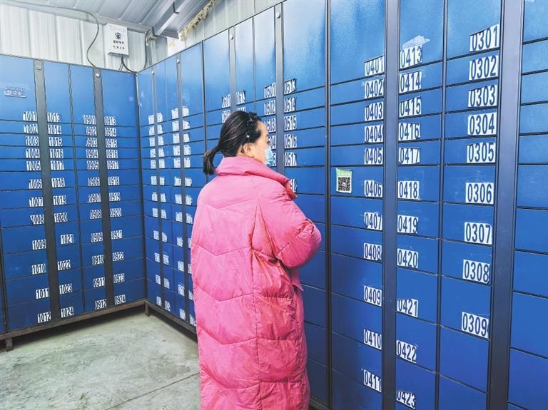 村民在智能快递柜取快递。