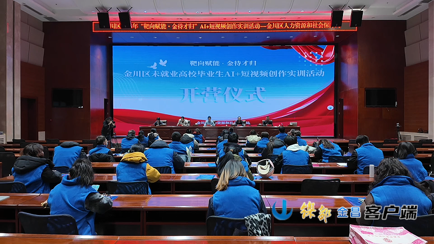 “靶向赋能 金待才归”金川区未就业高校毕业生AI+短视频创作实训活动开营仪式现场