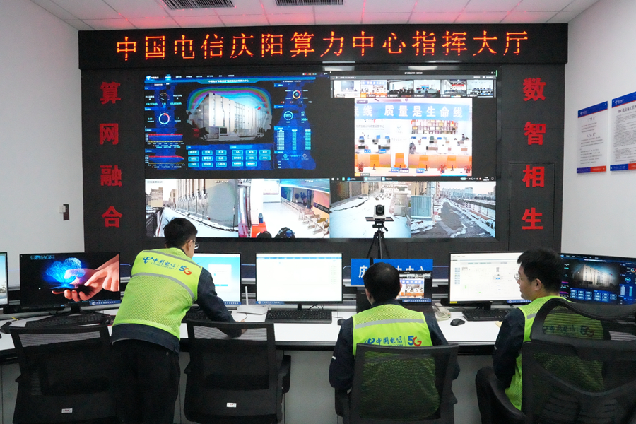 图为中国电信庆阳算力中心指挥大厅。新华网发(于洁 摄)