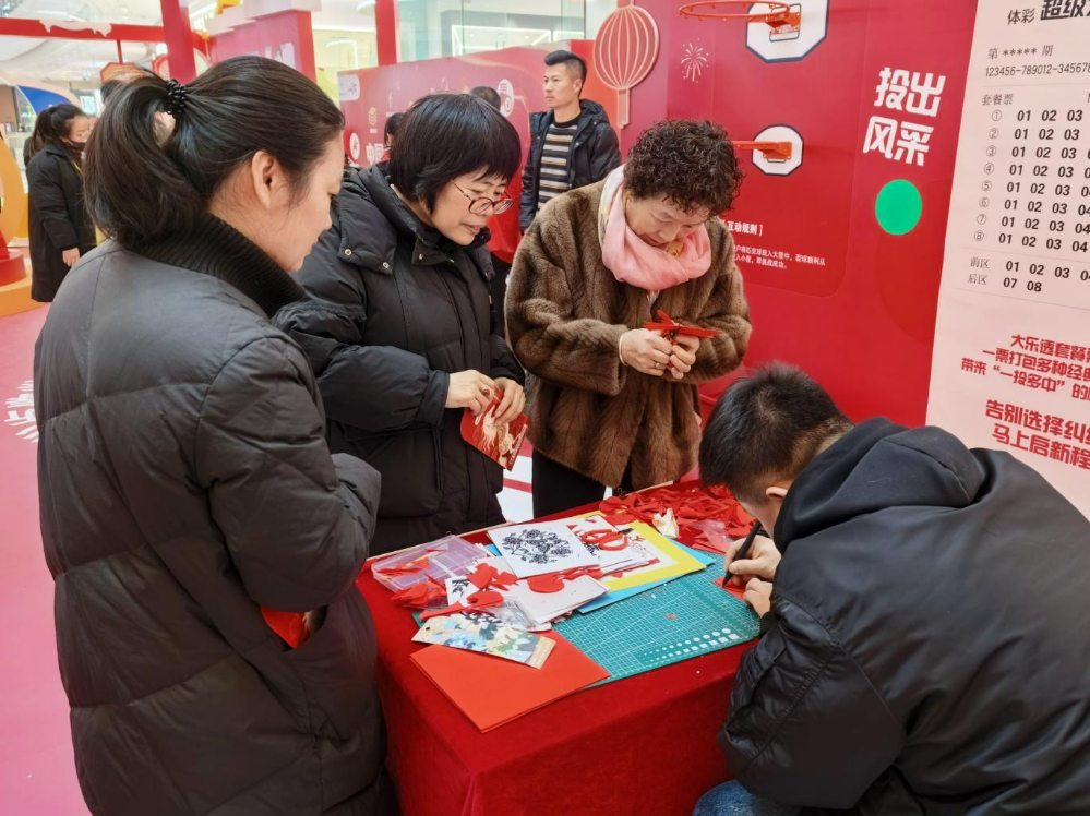 除了硬核的体育竞技,文化与公益的“软实力”也是此次市集的亮点。在非遗体验区,书法家挥毫泼墨送出新春“福”字,剪纸与中国结制作吸引了众多亲子家庭参与,指尖上的传统技艺让年味更加醇厚。