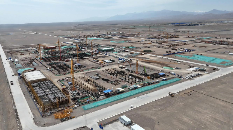 (甘肃巨化新材料有限公司高性能硅氟新材料一体化项目建设现场。岑文喆 摄)