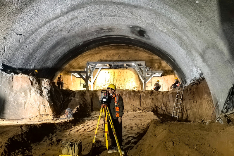 为应对突发地质风险,项目联合多单位团队组建了技术攻坚小组,通过预演山体开裂等风险,制定了刷方卸载、加密临时钢架横撑、加密监控量测和“短进尺、强支护、快封闭”等施工策略,实现了对隧道施工风险的精准预判与有效管控。同时针对冬季严寒的施工环境,项目对拌合站料仓、混凝土运输罐车等关键流程加装保温层和加热装置,确保混凝土温度符合规范要求,保障隧道结构的施工质量。此外,项目还应用了衬砌带模注浆施工工艺和隧道衬砌防脱空传感器系统,有效提升衬砌拱顶浇筑质量,实现浇筑过程数据实时监测。