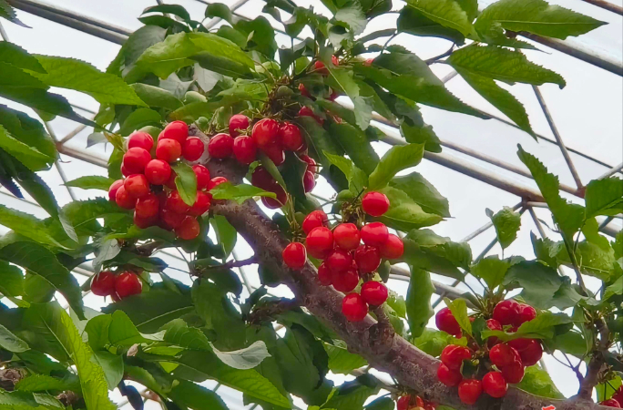 春节临近,秦州区玉泉镇烟铺村的设施大樱桃也将首批上市,通过精细化的“错峰种植”管理,这里的樱桃可实现从春节前到五月的梯次成熟、持续供应。在设施樱桃基地,不同大棚内景象各异:有的樱桃花簇满枝头,有的已结出黄豆大小的青果,更有大棚里红宝石般的樱桃即将成熟。基地利用“空调大棚”技术,在夏季进行为期68天的强制制冷,使樱桃树提前进入休眠,从而实现提早开花结果。