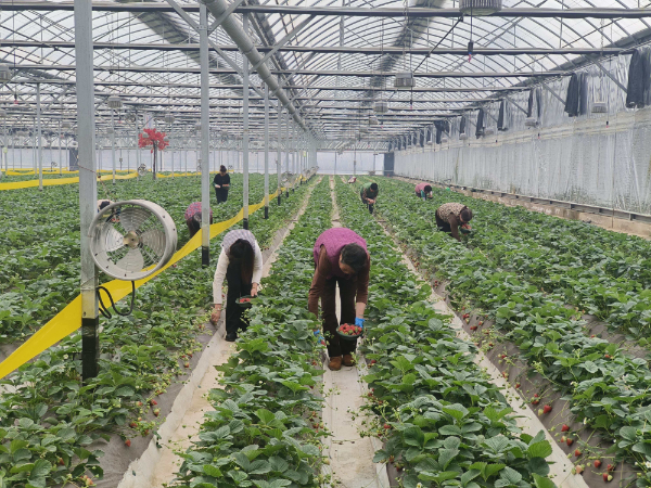 在秦州区天水镇焦李村的草莓小镇,连栋温室里果香四溢,整齐的草莓垄上,翠绿藤蔓间挂满颗颗饱满鲜红的果实,工人们正熟练地进行采摘、分拣和包装。“今年草莓已采摘半个月左右,市场供不应求,目前每天采摘量在800斤左右。”天水坤德农业有限公司草莓小镇园区销售管理孙婷婷介绍,为提升品质、延长供应,园区今年新引进了“越王”“香野”等22个优质品种,这些品种挂果量大、果型佳、硬度好、耐储运,口感优异,市场反响良好。